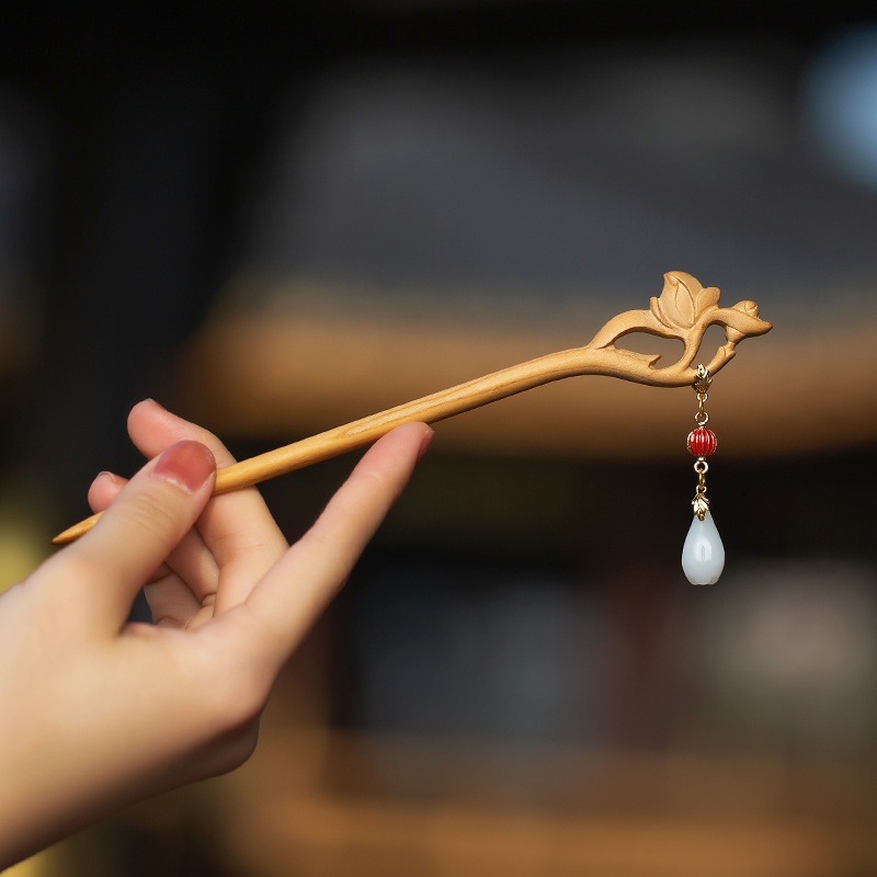 Ancient Chinese Style Elegant peach wood hairpinTassel Hair Stick for Women Girls Classical Wooden Hairpin Chinese Hair Accessories Jewelry